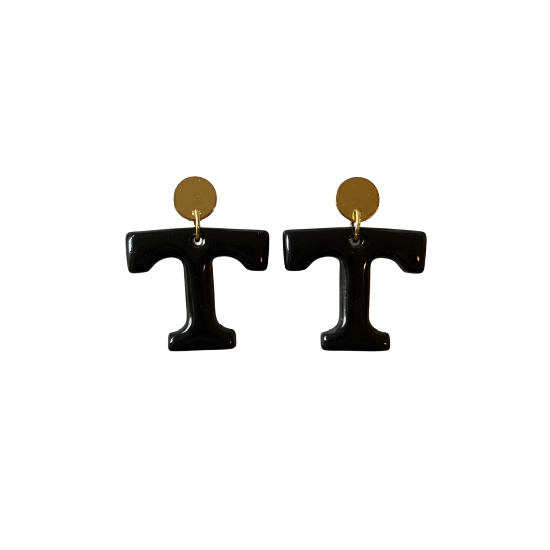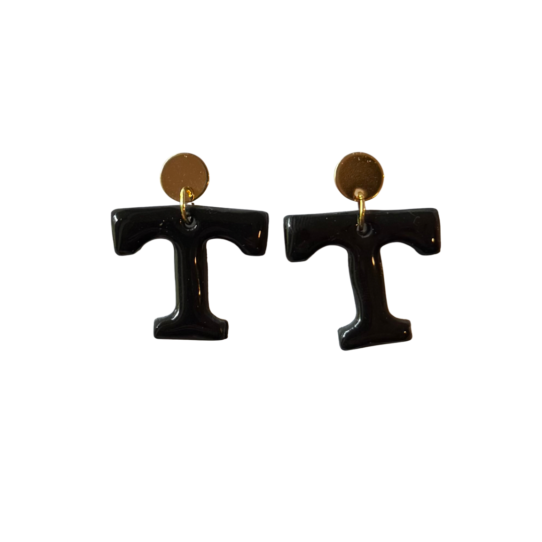 These black Power T earrings show off your Tennessee pride. Handcrafted from lightweight clay, they keep it classic with a bold, blacked-out twist perfect for game days, tailgates, or showing off your Vol spirit with an edge. Minimalist, powerful, and made to rep Rocky Top in style.