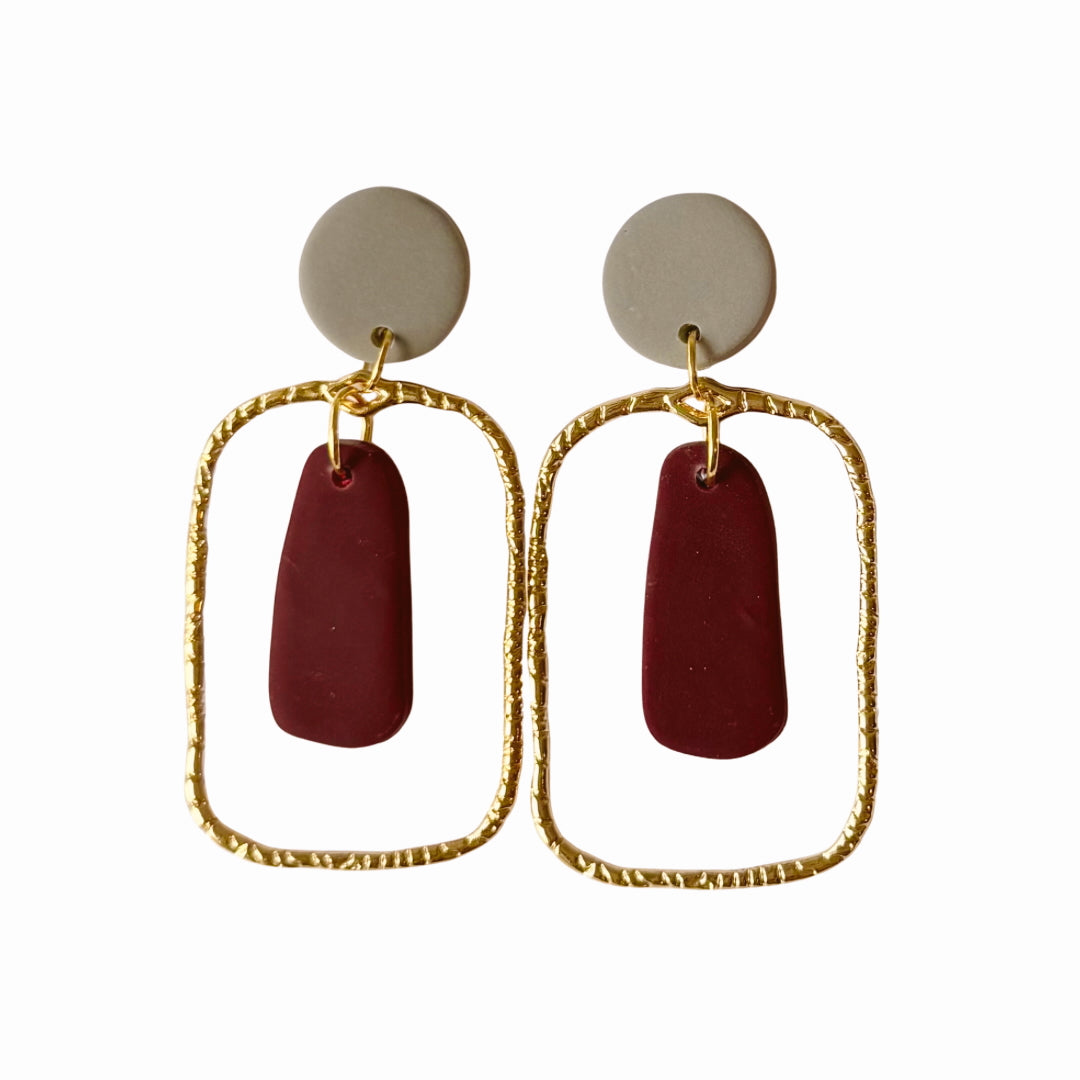 These handcrafted burgundy and grey clay earrings bring a perfect balance of bold and neutral tones. Lightweight and stylish, they’re ideal for showing off your team spirit or adding a sophisticated touch of color to your everyday look. Whether you're at the game or out on the town, these earrings bring the right amount of flair.