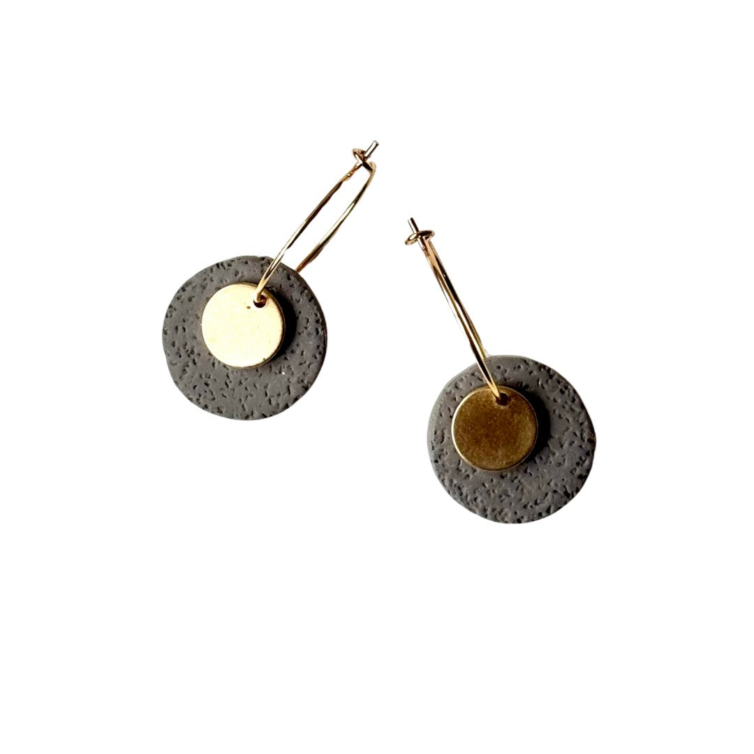Elevate your everyday style with these minimalist grey clay circle earrings. Handcrafted for a sleek and modern look, they feature smooth, neutral-toned clay circles paired with elegant gold-filled hoops. Perfectly lightweight and versatile, these earrings effortlessly complement both casual and polished outfits.