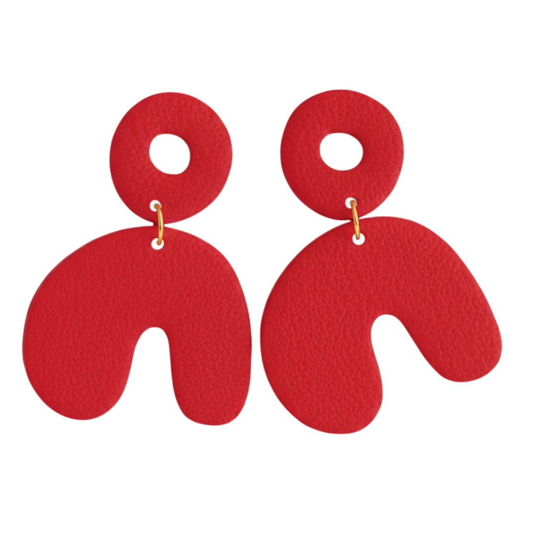 red game day earrings, red arch earrings, game day jewelry, red team earrings, college game day accessories, football earrings, tailgate earrings, holiday earrings, Valentine’s Day earrings, Christmas red earrings, statement earrings, handmade earrings, polymer clay earrings, lightweight earrings, boutique jewelry, bold earrings, fall game day accessories