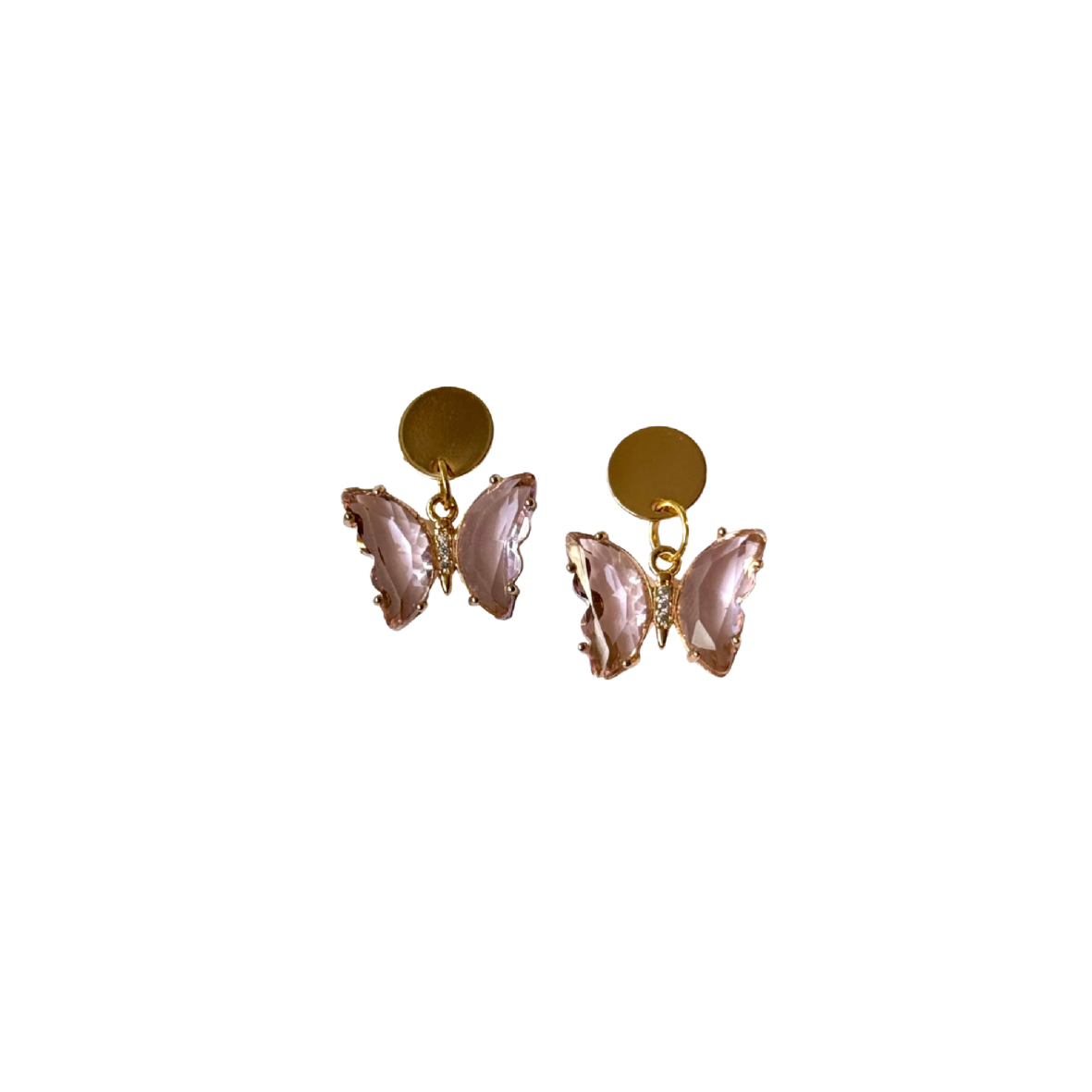 These whimsical earrings feature butterfly shapes crafted from stunning acrylic glass, blending vibrant pink and clear hues for a playful yet elegant look. The material has a beautiful, light-catching shimmer, adding just the right amount of "Dolly Parton sparkle" to elevate your style. Lightweight and eye-catching, these earrings are perfect for adding a touch of fun and charm to any outfit.