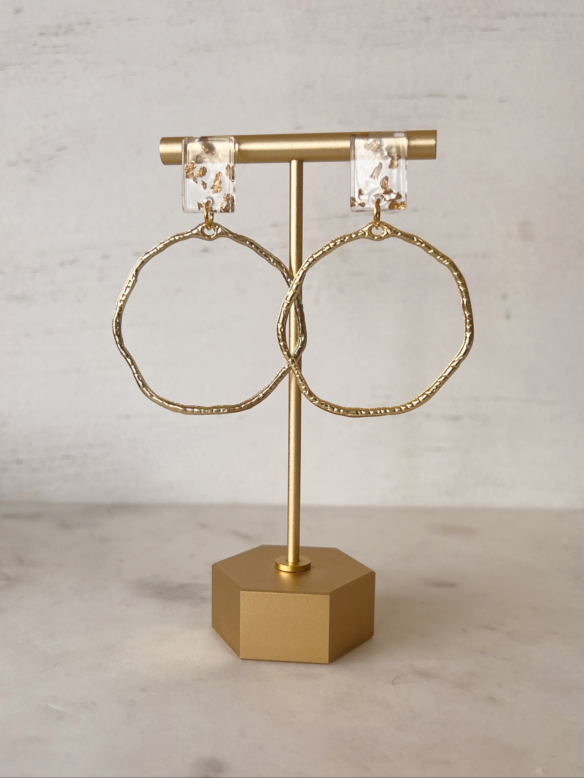 Elevate your style with our stunning earrings featuring an acrylic top adorned with shimmering gold or silver flakes. Paired with gold-filled or stainless steel silver circles, these earrings offer a timeless elegance that's perfect for any occasion and every season. Whether you're dressing up for a special event or adding a touch of sophistication to your everyday look, these versatile earrings are a must-have addition to your jewelry collection.