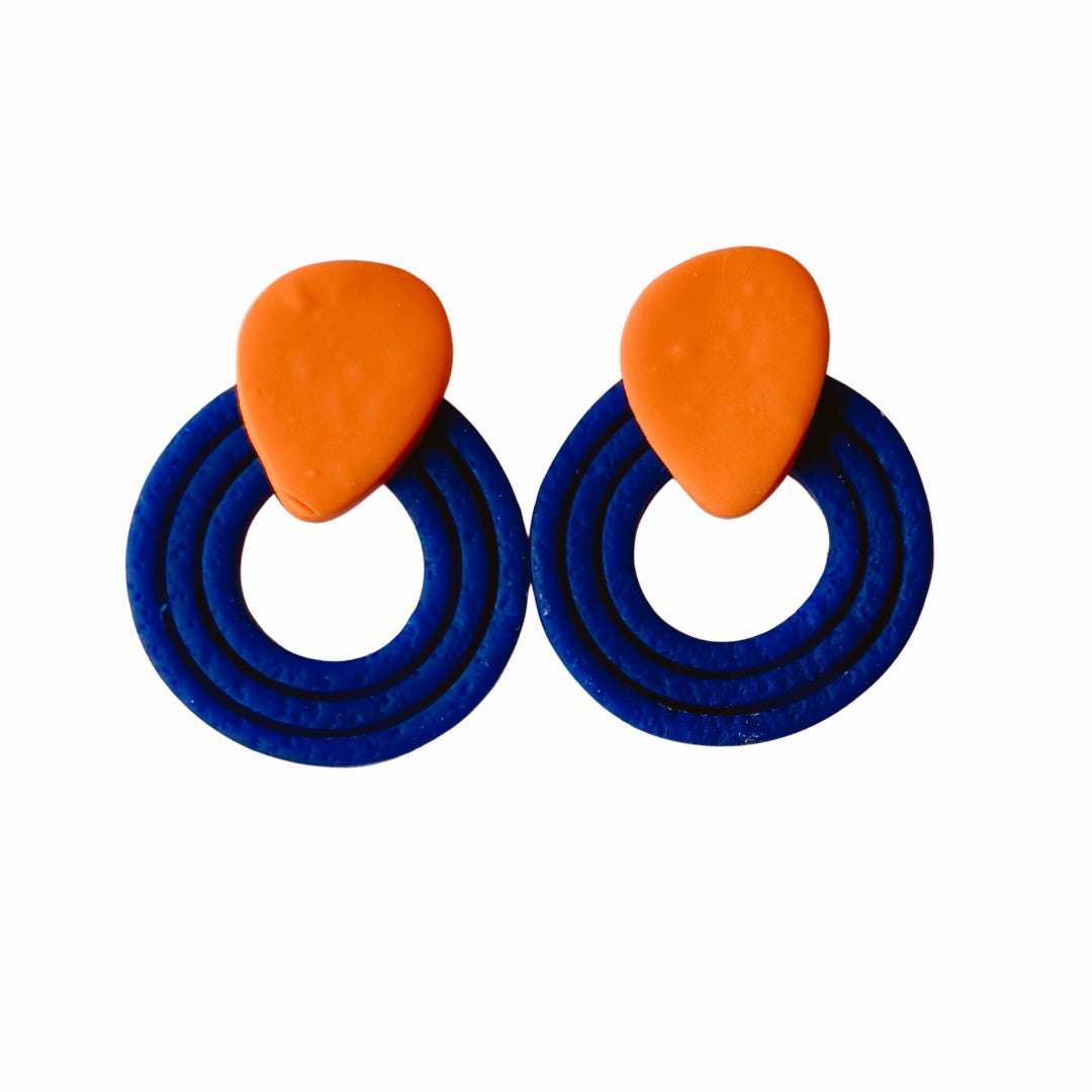 Simple, bold, and effortlessly stylish, these handcrafted clay circle earrings combine vibrant orange and blue hues for a striking, modern look. Lightweight and versatile, they're perfect for game days, casual outings, or anytime you want to add a pop of color to your ensemble. A must-have accessory for those who love classic shapes with a playful twist!