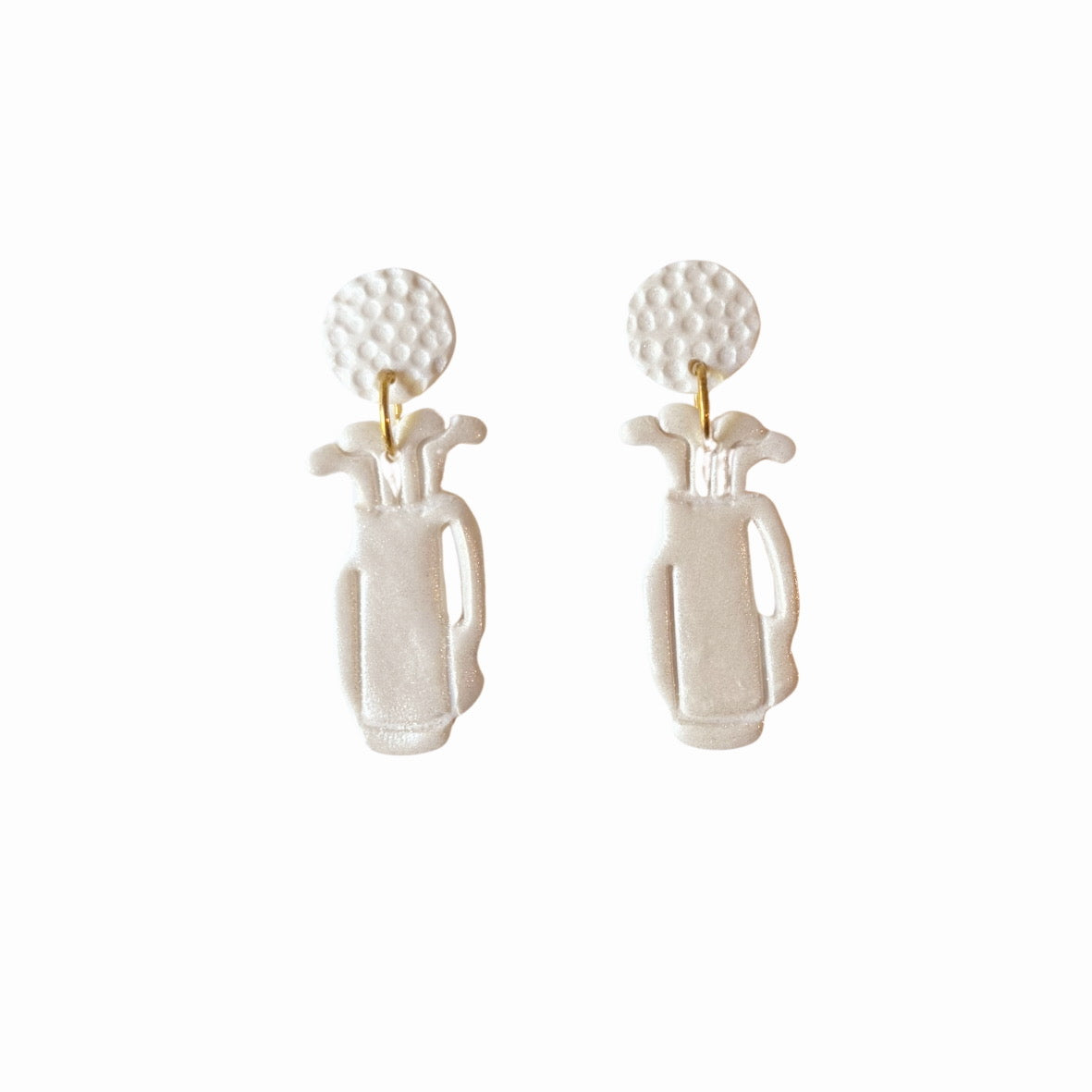 These golf stud earrings are a hole-in-one for style and spirit! Featuring mini golf balls paired with adorable dangling golf bags, each piece has a soft shimmer finish that adds the perfect touch of sparkle.