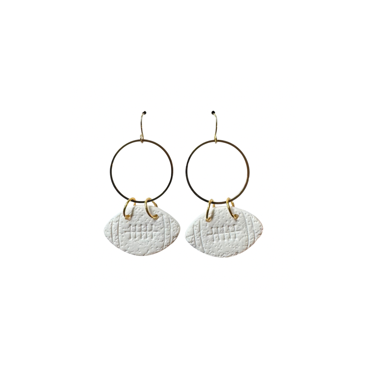 This white football jewelry brings a fresh, feminine twist to your favorite game day accessory. Handcrafted with sleek white clay and sporty details, it’s the perfect mix of subtle and statement. Whether you're on the sidelines or out with friends, it's a go-to piece for football lovers who love a clean, modern look.
