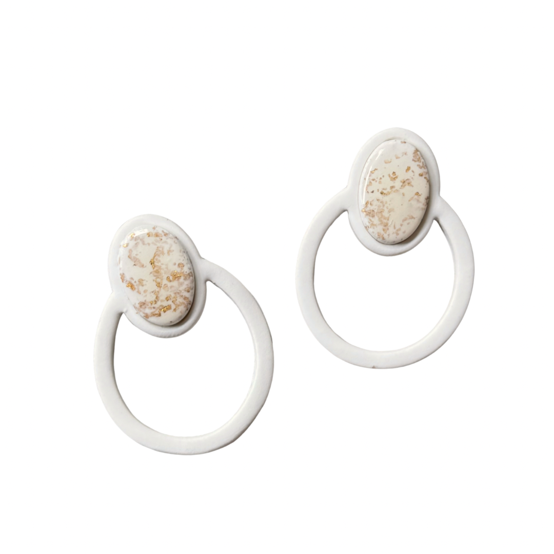 These gold and white marbled circle earrings are a modern classic. Featuring hand-marbled polymer clay in soft swirls of white and gold, each pair is uniquely one-of-a-kind. The circular shape adds a clean, timeless silhouette—perfect for everything from casual brunches to evening events. Lightweight, versatile, and effortlessly elegant.